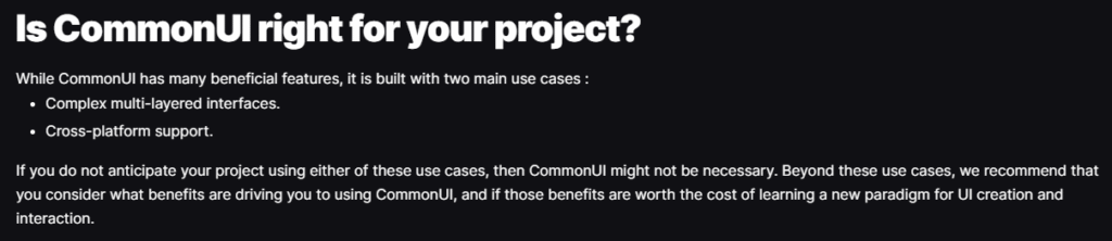 Initial implementation explored using Unreal’s Common UI framework for layered menu navigation and input handling across widgets.