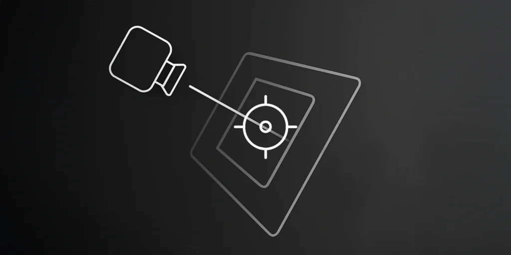 Camera focus diagram showing DOF aligned with orbit target in AVE II